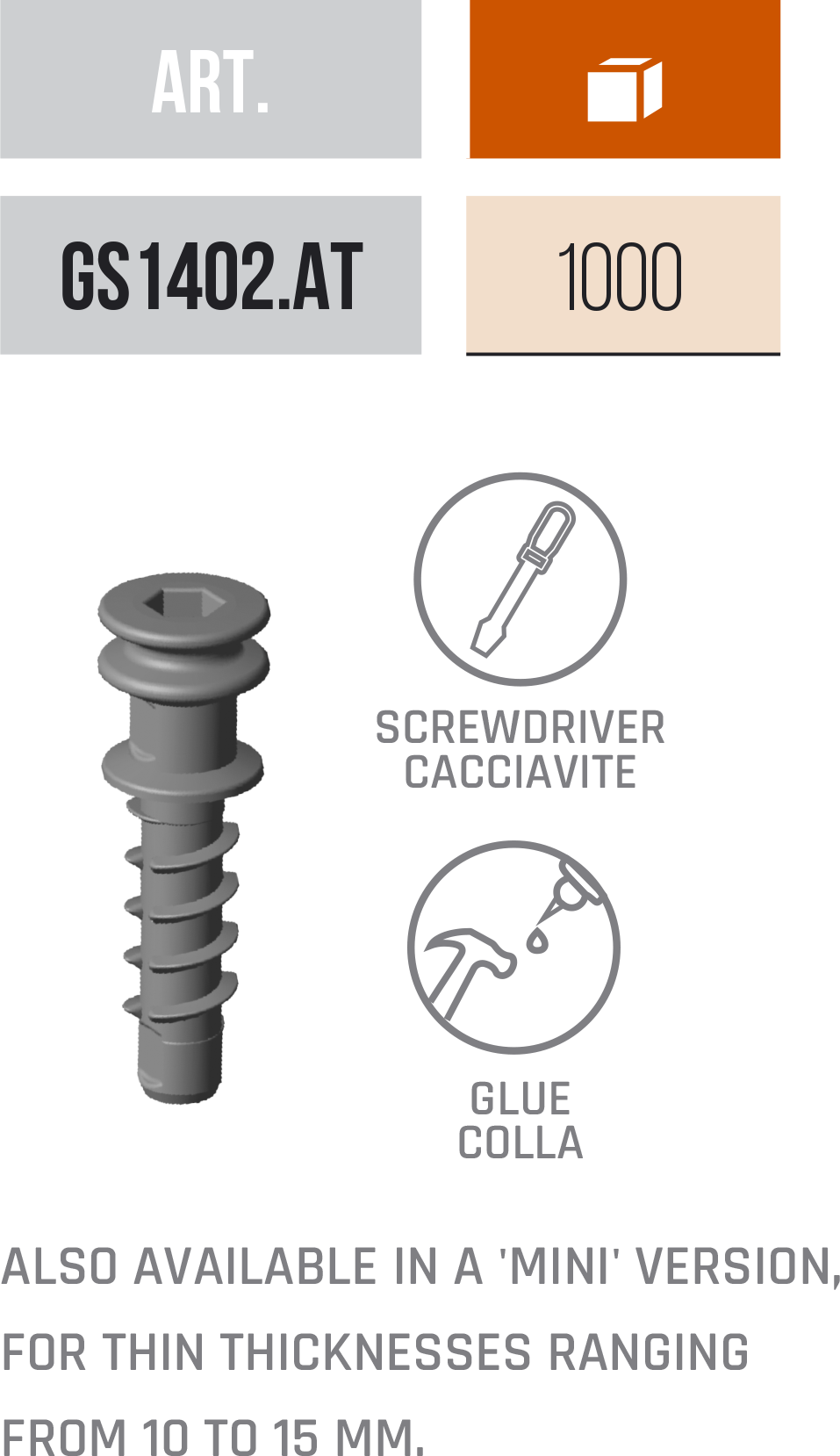 Available in screw-on and press-on versions, it is engineered for quick and easy furniture assembly, completely no-tool and without the need for additional hardware, creating a strong and reliable connection. In order to create the correct drill hole to insert BOND, it is required to combine the dedicated cutter to create the correct drill hole for BOND to move and anchor it optimally.